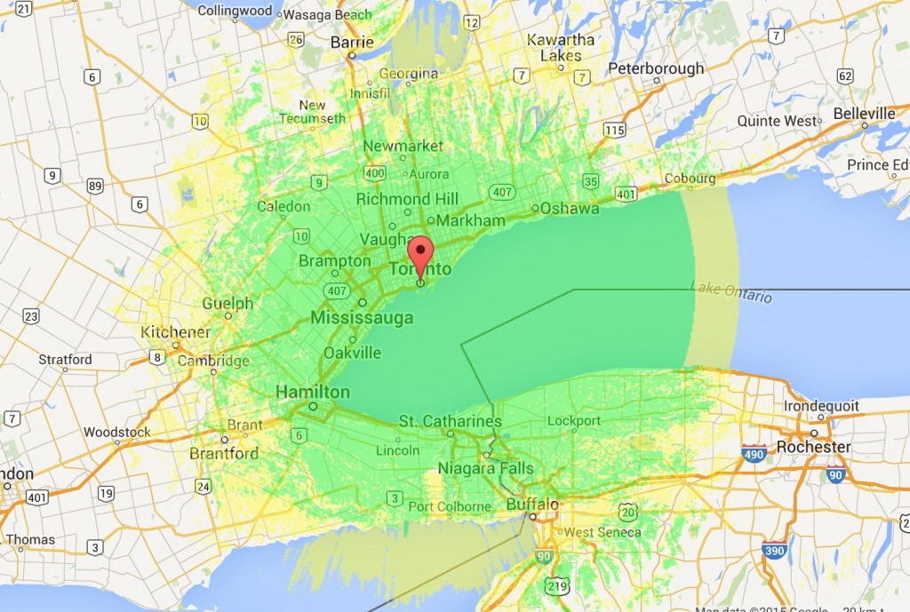 From First Canadian Place, VA3XPR will now be able to provide reliable coverage around the greater Toronto area from Clarington to the east, Cambridge to the west, Barrie to the north and Buffalo, NY to the south, as outlined in the above coverage map. To see the new coverage in more detail, there is an interactive coverage map that can outline expected coverage to a more granular level.